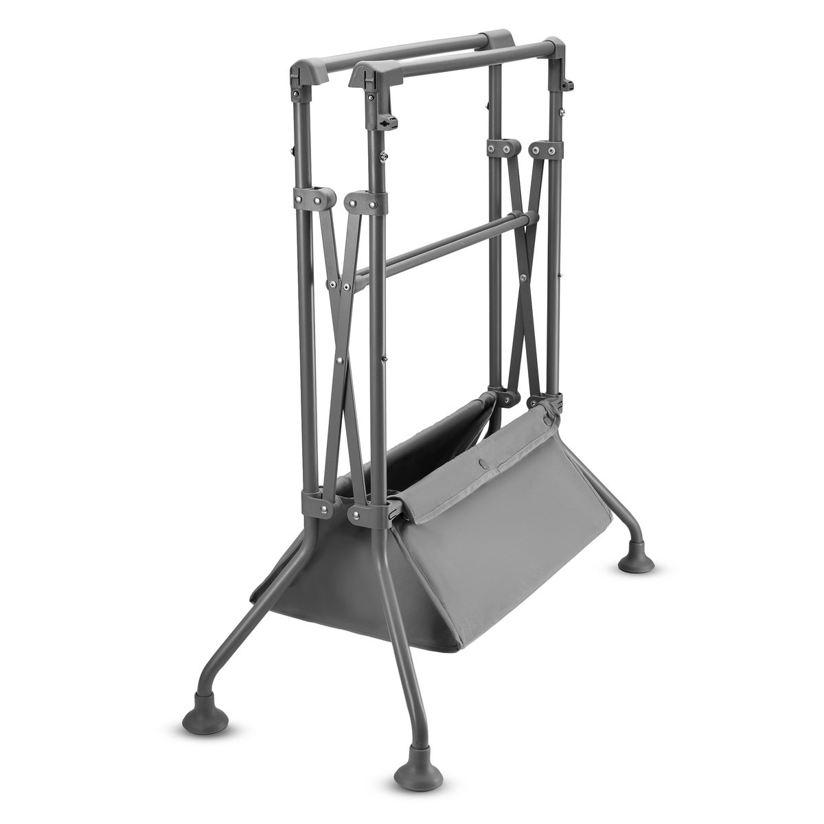 La baignoire se plie à plat grâce à sa partie en silicone, tandis que le support se replie facilement pour un rangement minimal.
