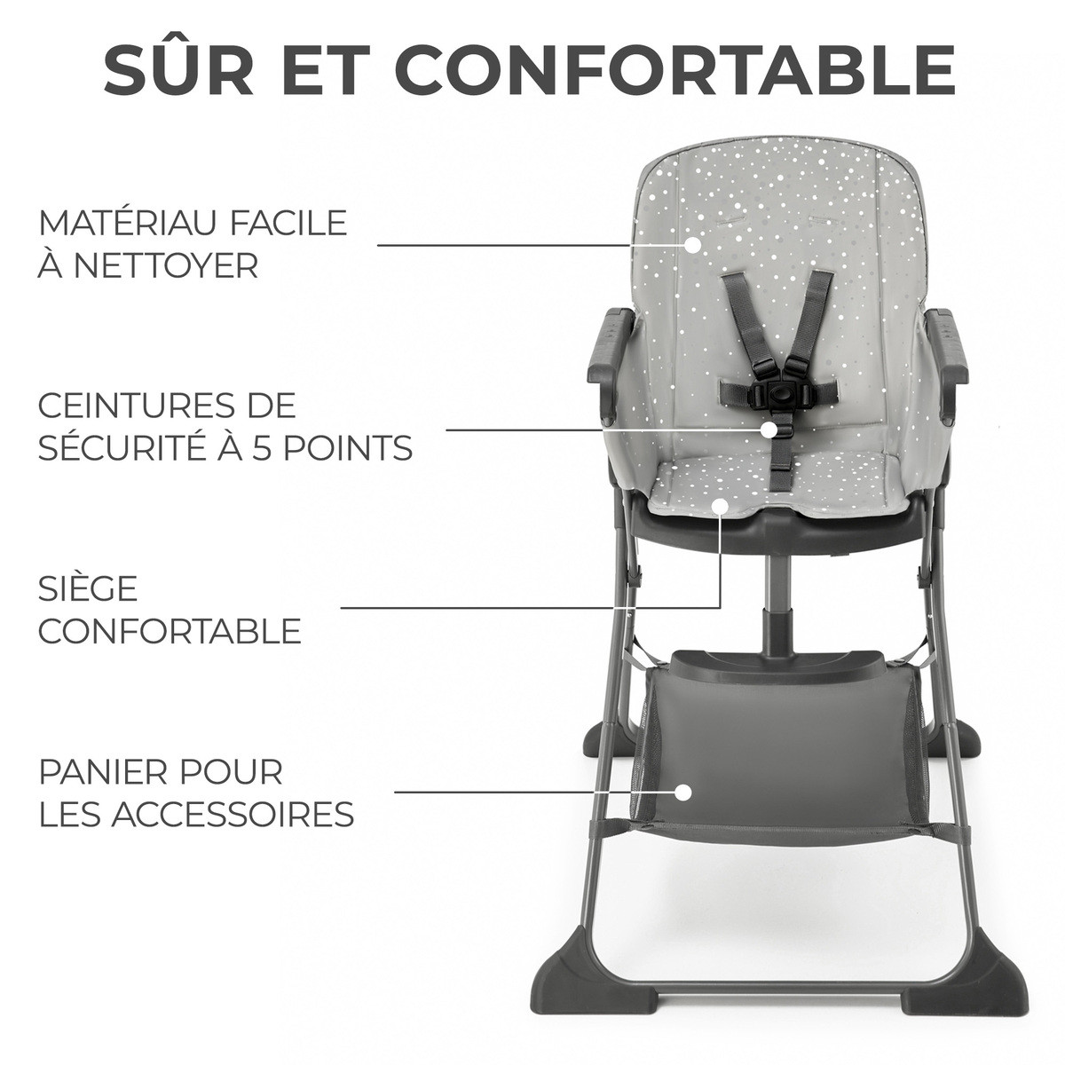 Chaise haute bébé FOLDEE : Pliage rapide, légère et transportable partout