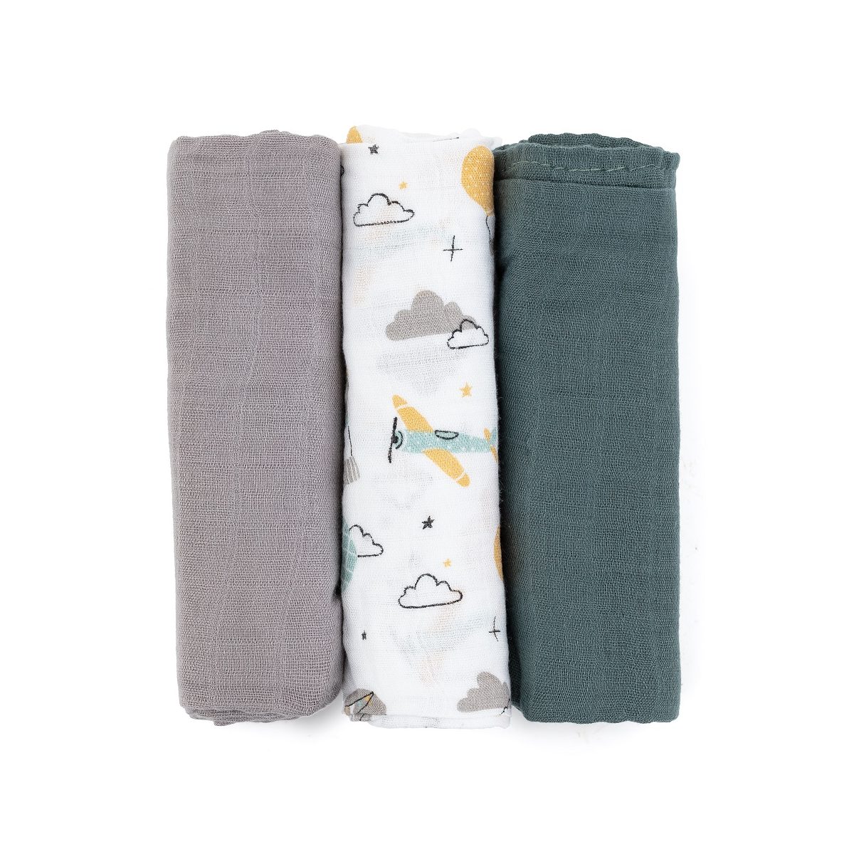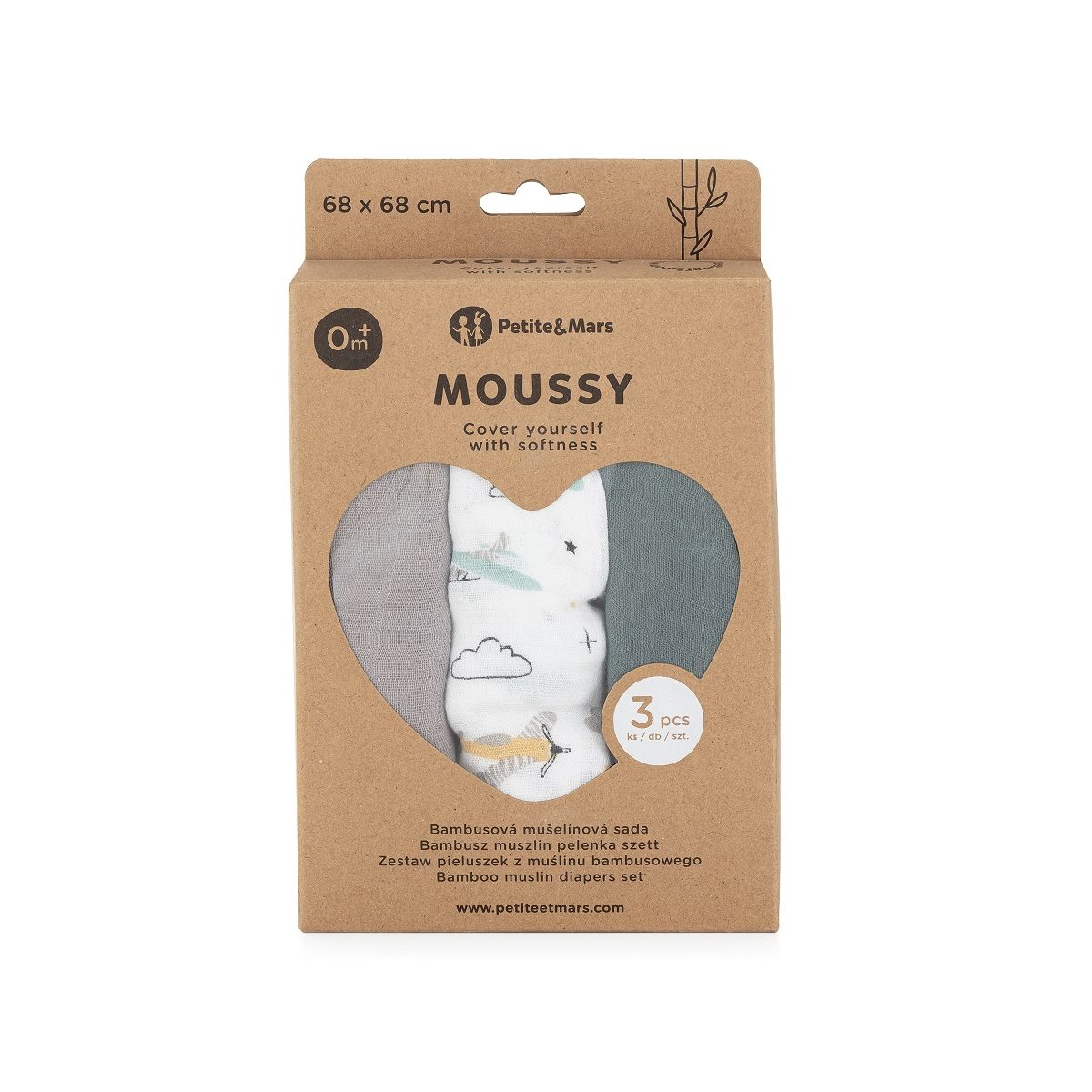Petite&Mars - Moussy -Set of 3 Bamboo muslin swaddles