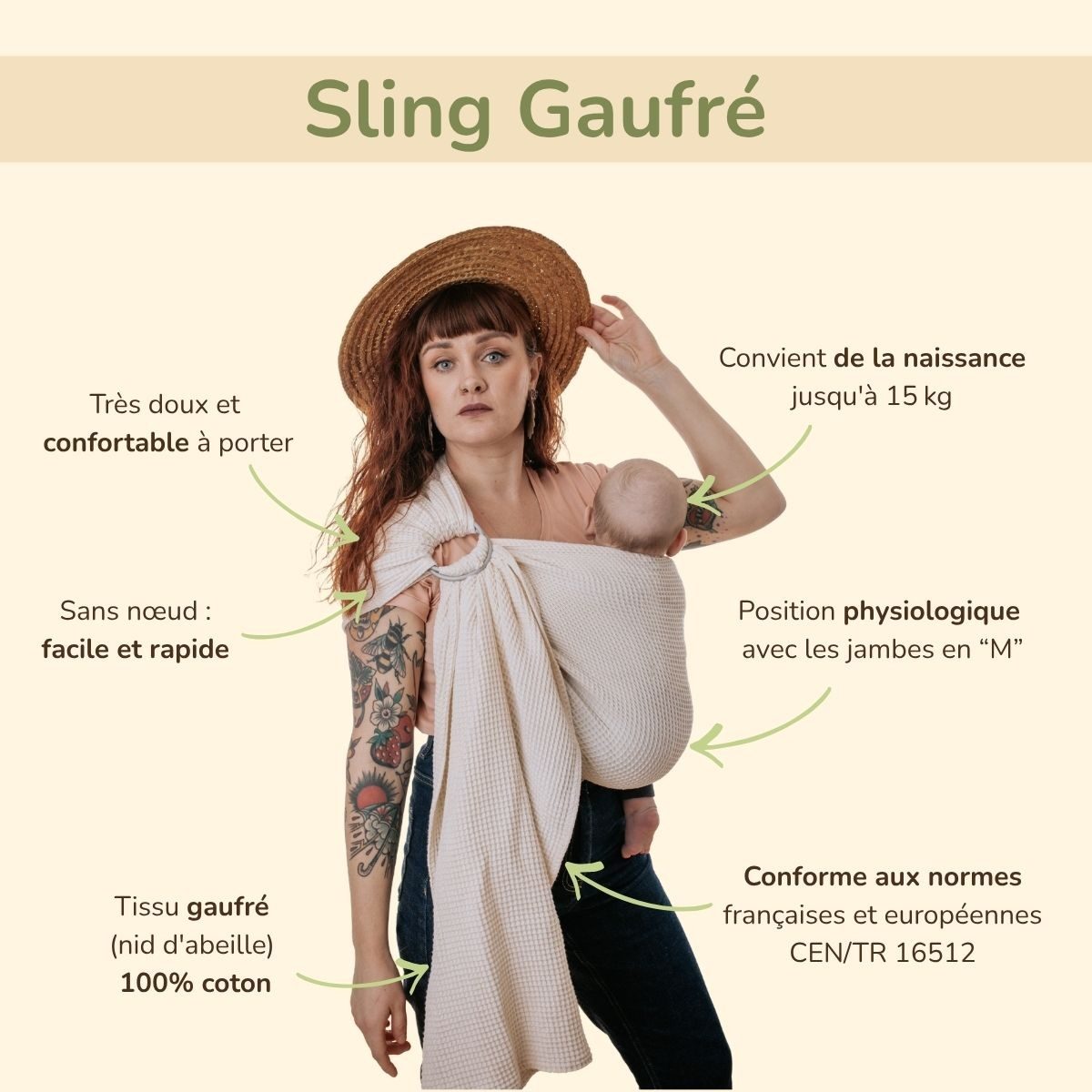 En ce qui concerne le ring sling gaufré, ses dimensions sont de 190 x 65 cm.