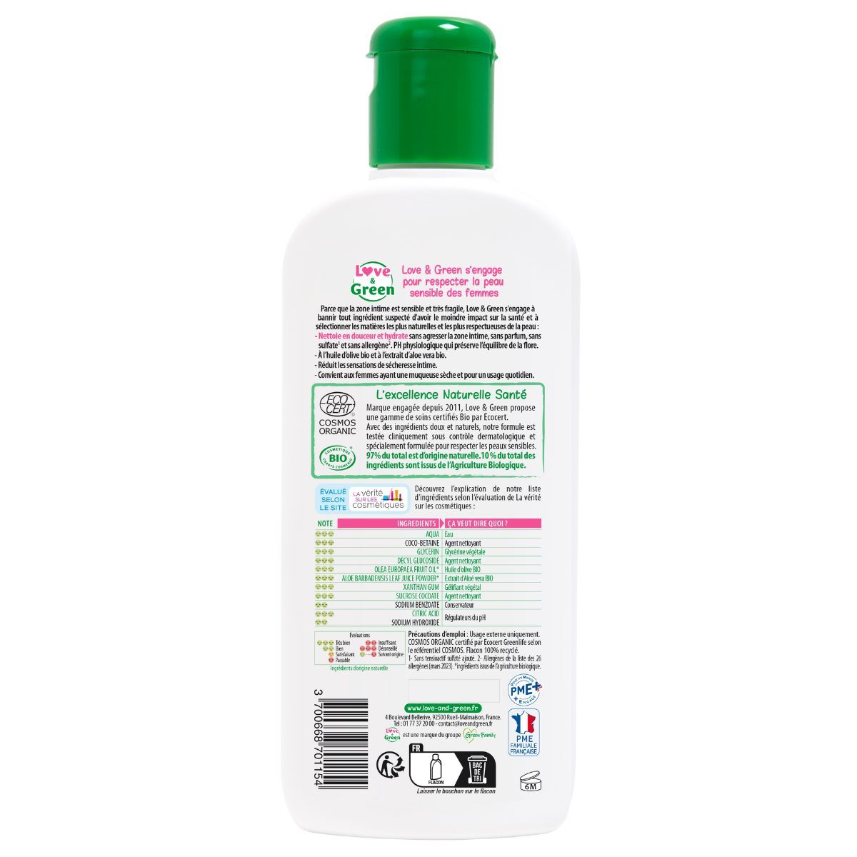 The Gel Washing intimate Moisturizer from the French brand Love & Green is hypoallergenic and tested under dermatological control and gynecological.