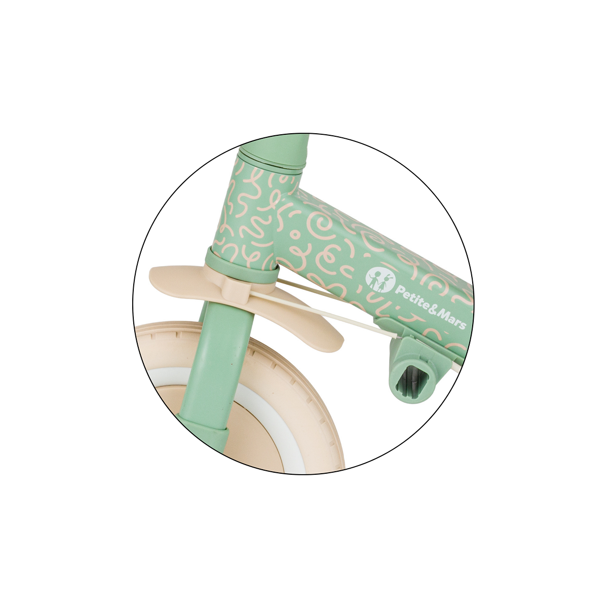 Le vélo Turbo de Petite&Mars est équipé de roues en mousse EVA, ce qui le protège des pierres tranchantes et autres surfaces dures des chemins de terre. Les roues sont suffisamment larges pour franchir les obstacles du quotidien.