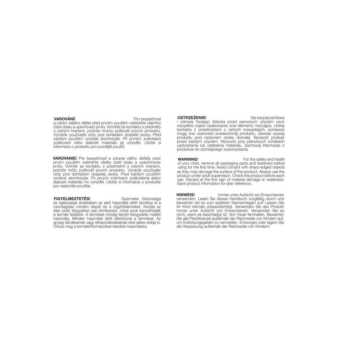 - Avertissements - Pour la sécurité et la santé de votre enfant, retirez toutes les parties de l’emballage et les attaches avant la première utilisation.