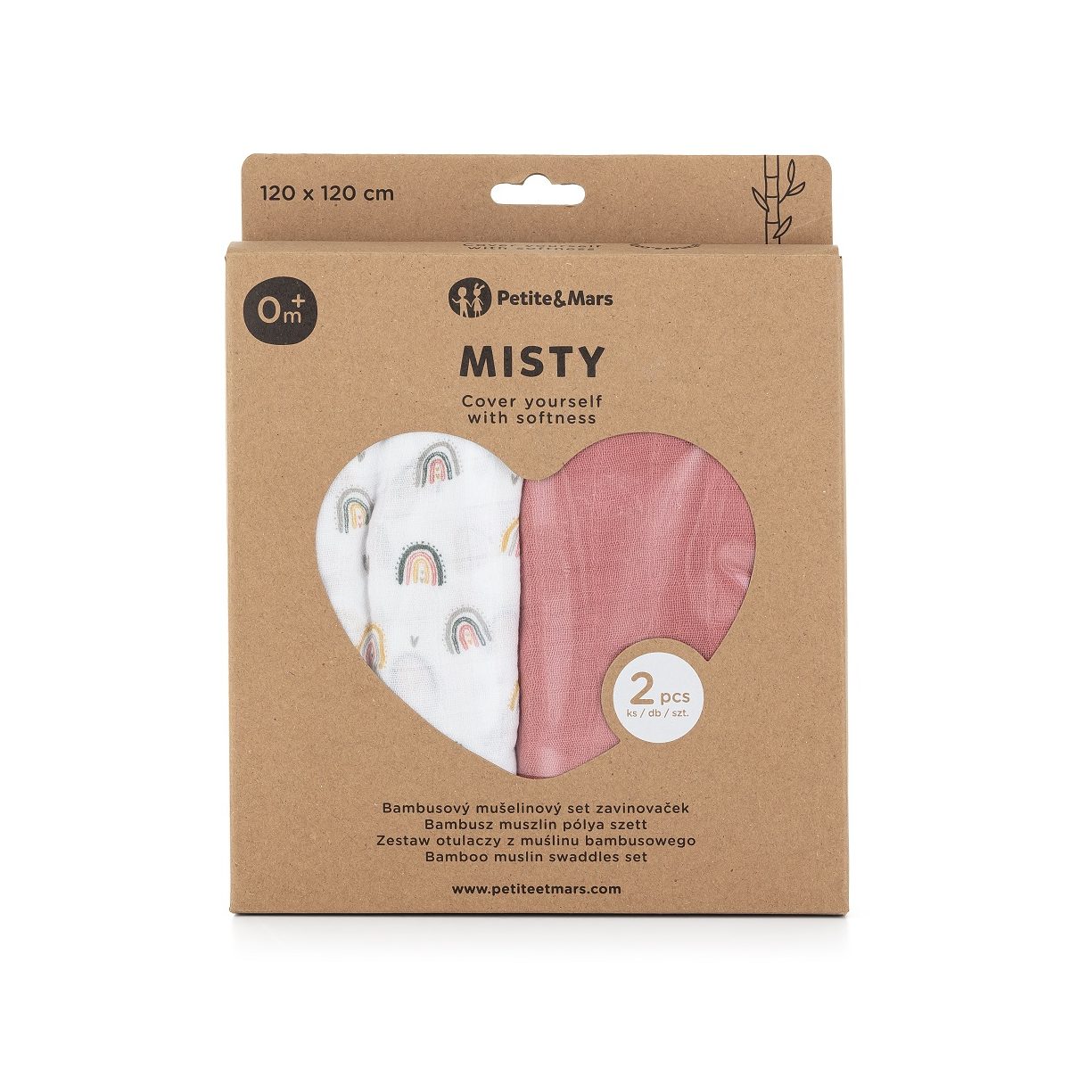 Petite&Mars - Misty-Set of 2 Bamboo muslin swaddles 120x120