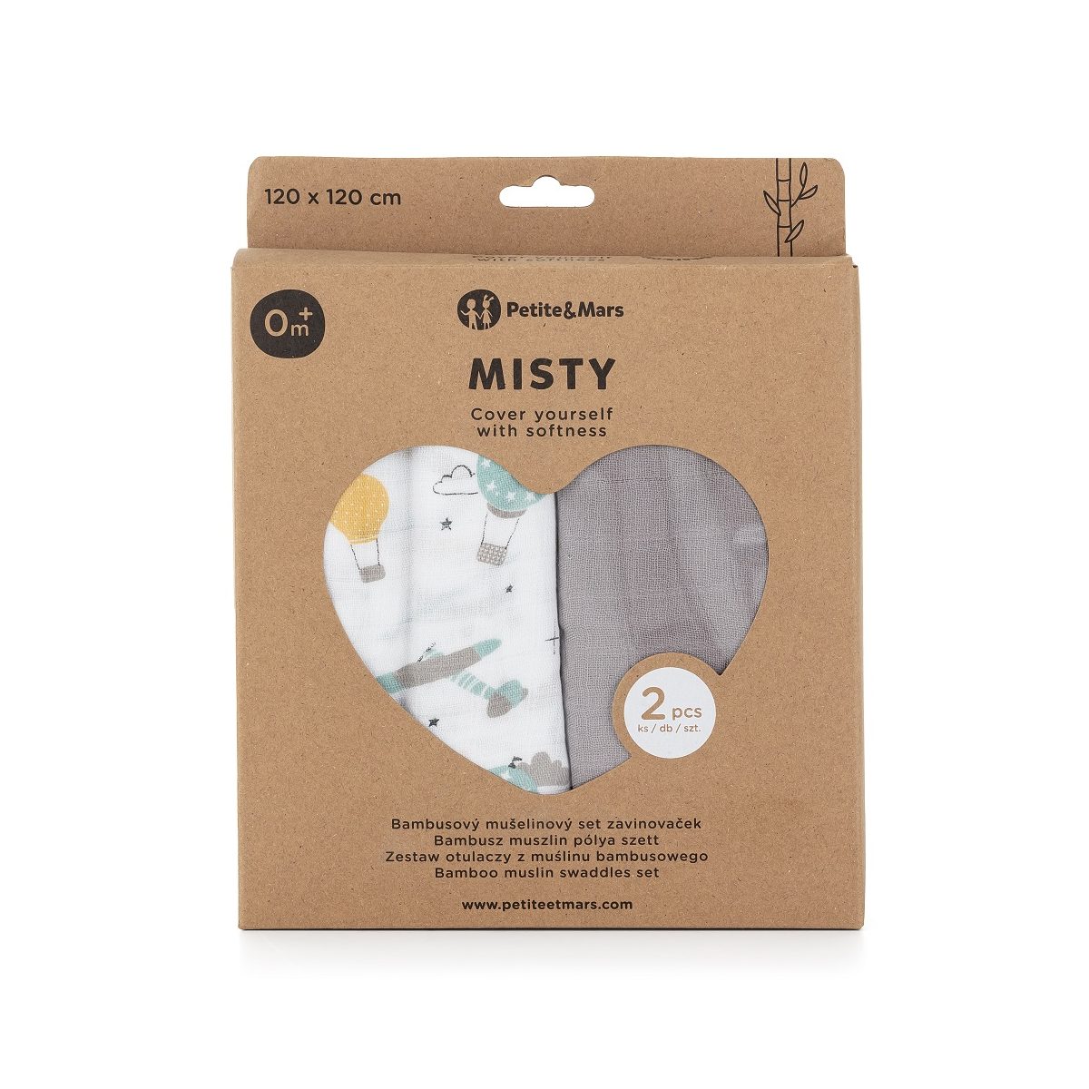 Petite&Mars - Misty-Set of 2 Bamboo muslin swaddles 120x120