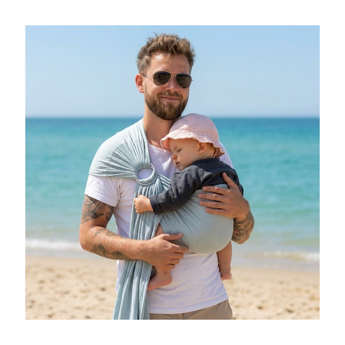 Le Naturiou R'Sling bleu polaire écharpe sans noeud respirante est conçu avec un matériau non absorbant, ce qui le rend idéal pour passer des moments autour de l'eau (mer ou piscine).