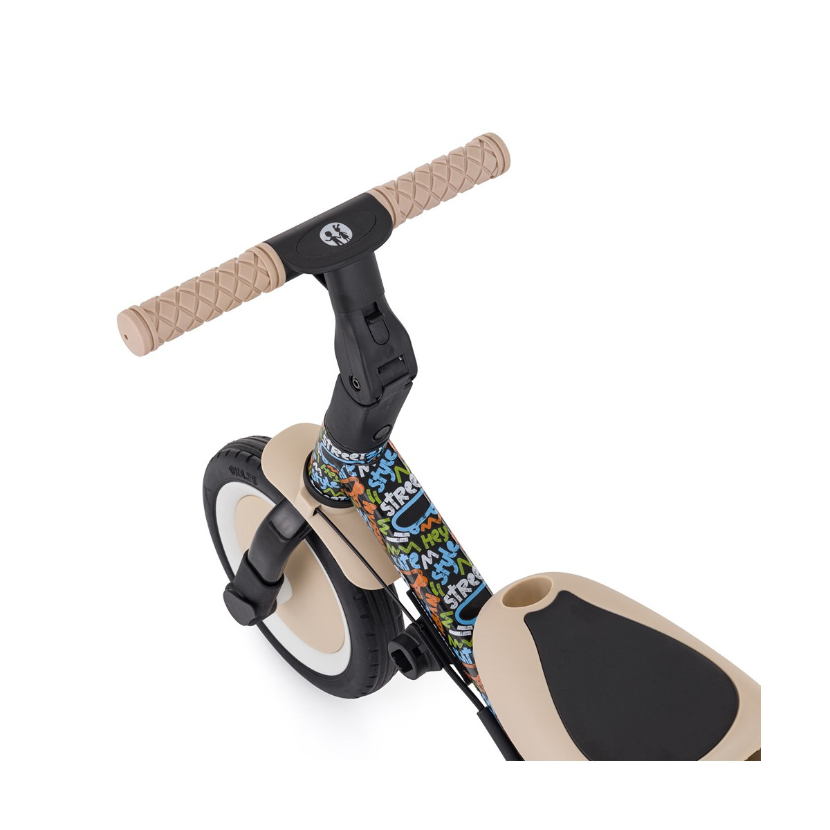 Le guidon est réglable et équipé de poignées antidérapantes en caoutchouc pour une prise en main sûre. Les pédales sont amovibles et la selle ajustable en hauteur s’adapte à la croissance de l’enfant, tout en assurant une sécurité maximale grâce aux ceintures de sécurité réglables.