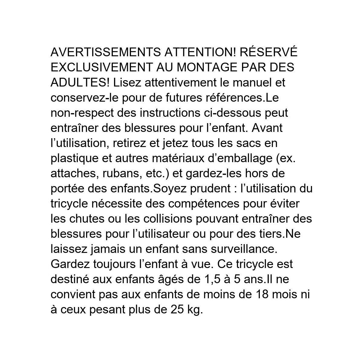 - Avertissement - Ce vélo convient aux enfants de 1,5 à 5 ans, il n'est pas destiné aux enfants de moins de 1,5 ans.