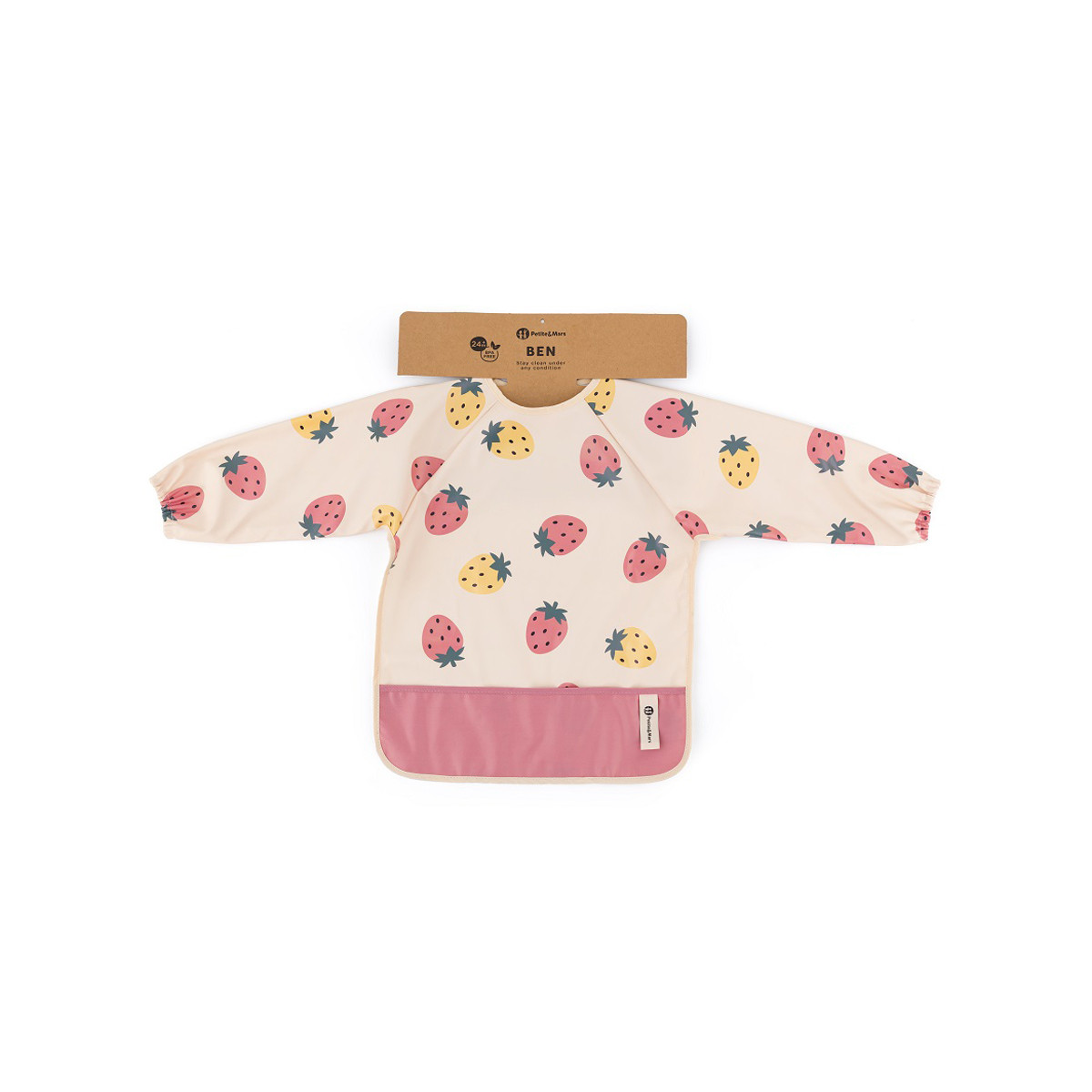 Petite & Mars - Ben - Bavoir à enfant manches longues  Beige Strawberies