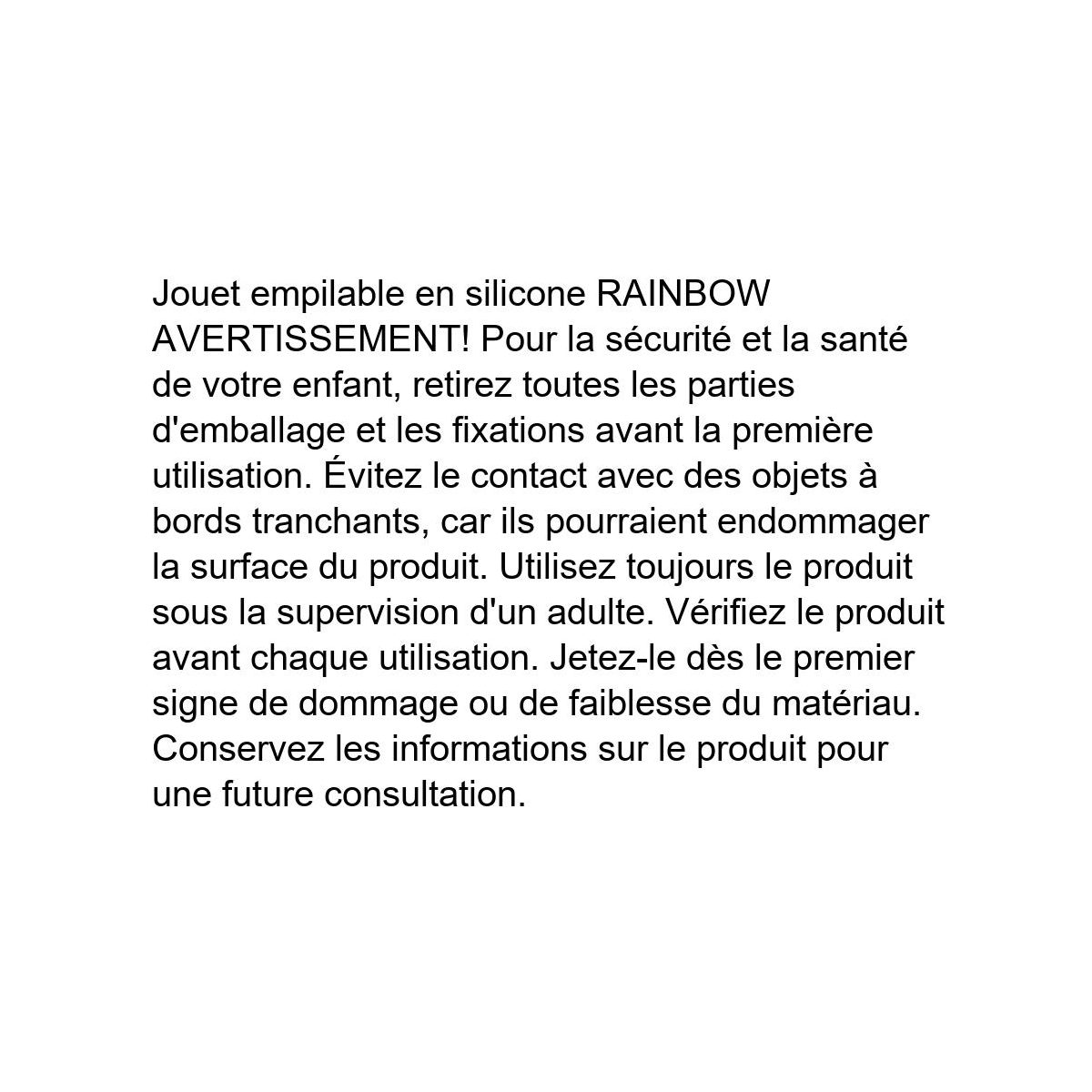 - Avertissement - Jetez-le dès les premiers signes de dommage ou de faiblesse du matériau. Conservez ces informations pour référence ultérieure
