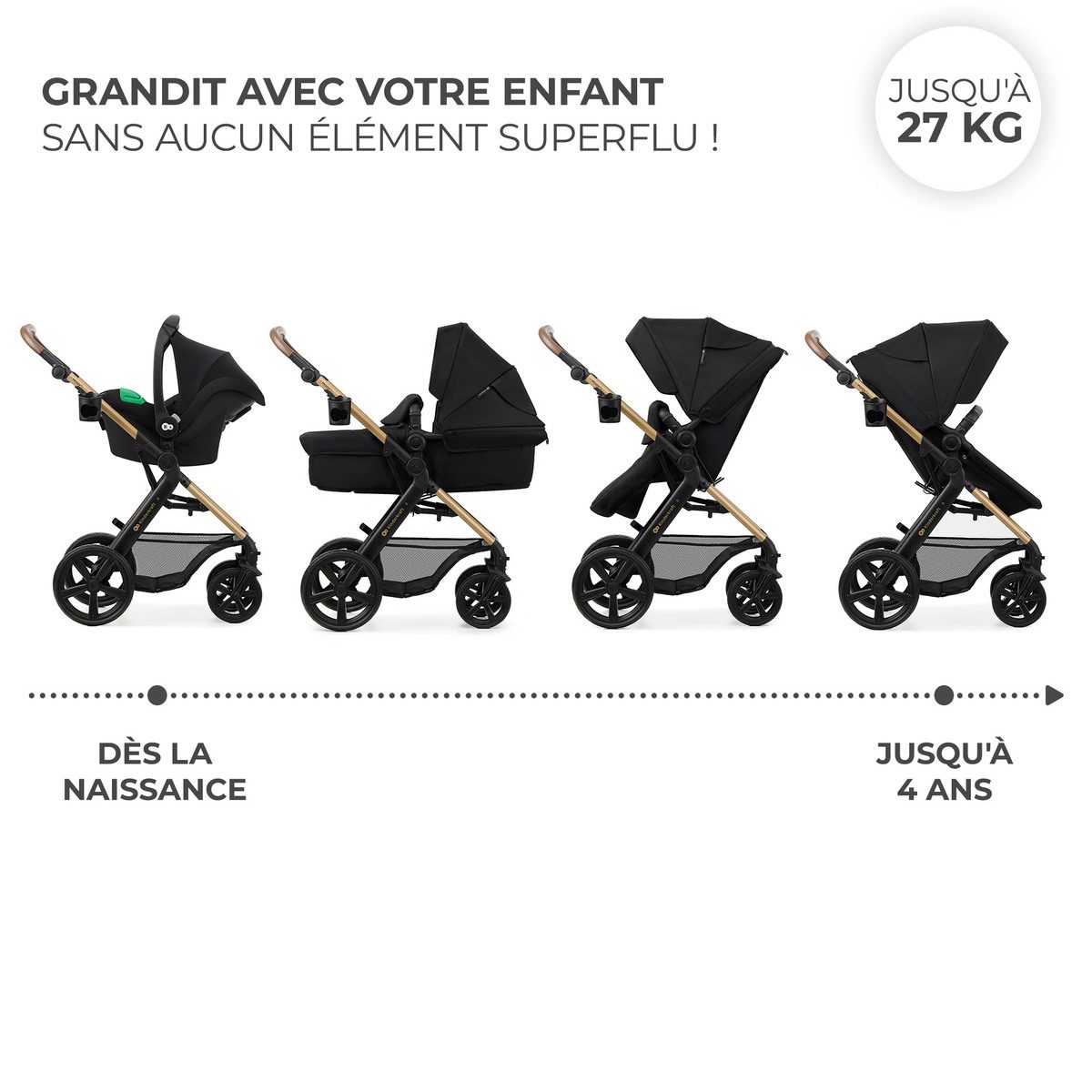 La MOOV 2 est une poussette multifonction 3 en 1 pensée pour accompagner votre enfant dès la naissance jusqu’à l’âge préscolaire. Solide et pratique, elle supporte jusqu’à 27 kg (22 kg pour l’enfant et 5 kg pour le panier). Livrée avec des accessoires indispensables, des adaptateurs universels ainsi que le siège auto MINK PRO i-Size, elle rend chaque sortie plus simple et agréable.