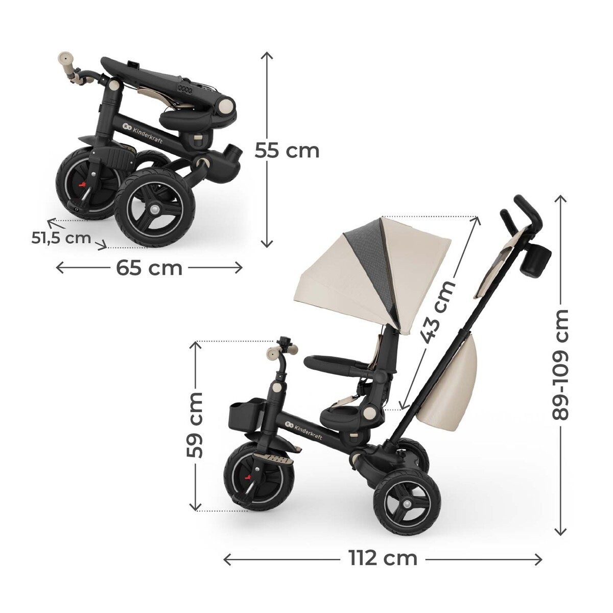 - Dimensions plié - 77 × 66 × 51,5 cm (sans poignée parent)