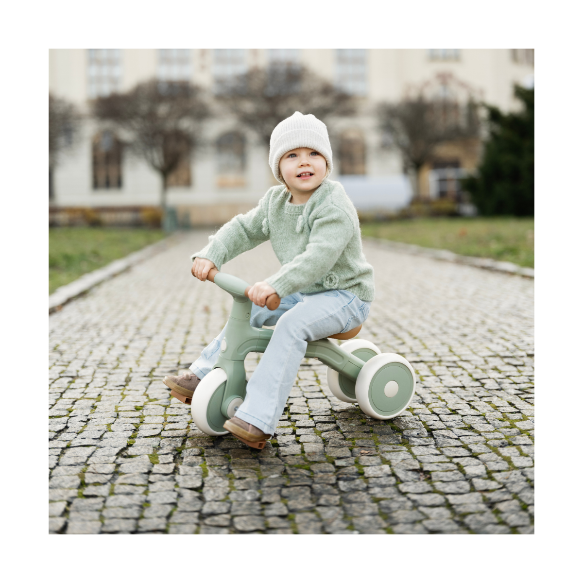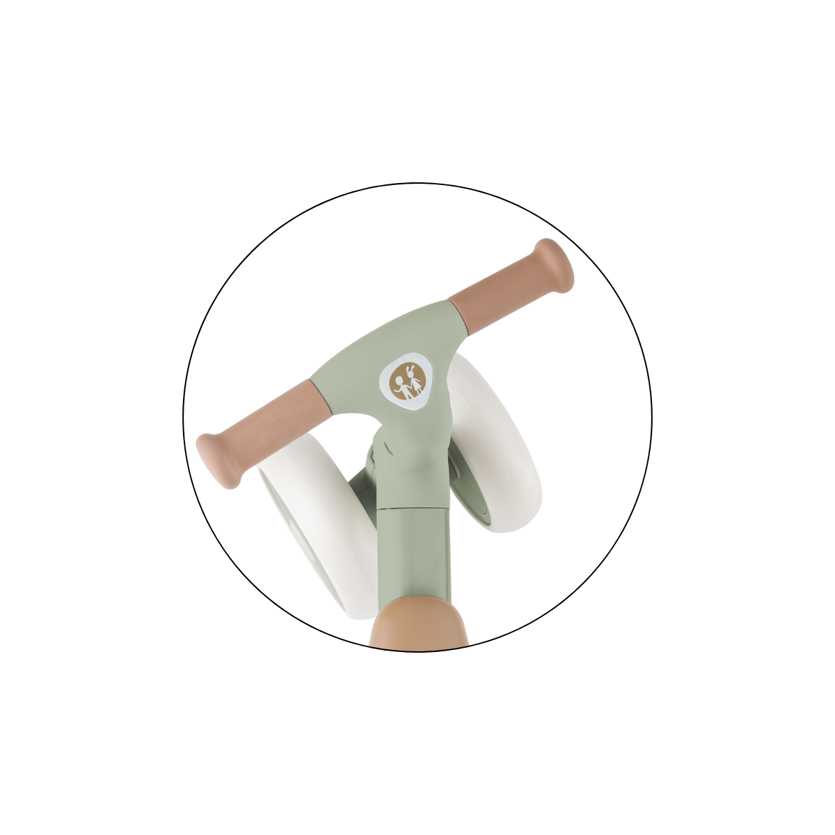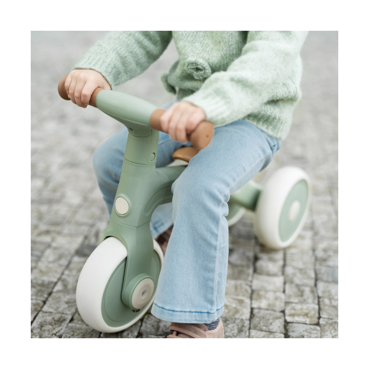 Au début, Bingo s’utilise comme un tricycle sécurisé, avec la possibilité d’installer deux roues à l’avant ou à l’arrière. Cette configuration offre une stabilité optimale pour les enfants qui découvrent leurs premiers mouvements et apprennent à se déplacer en toute confiance.