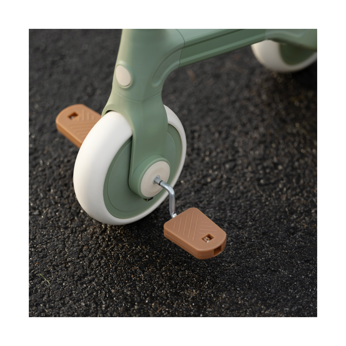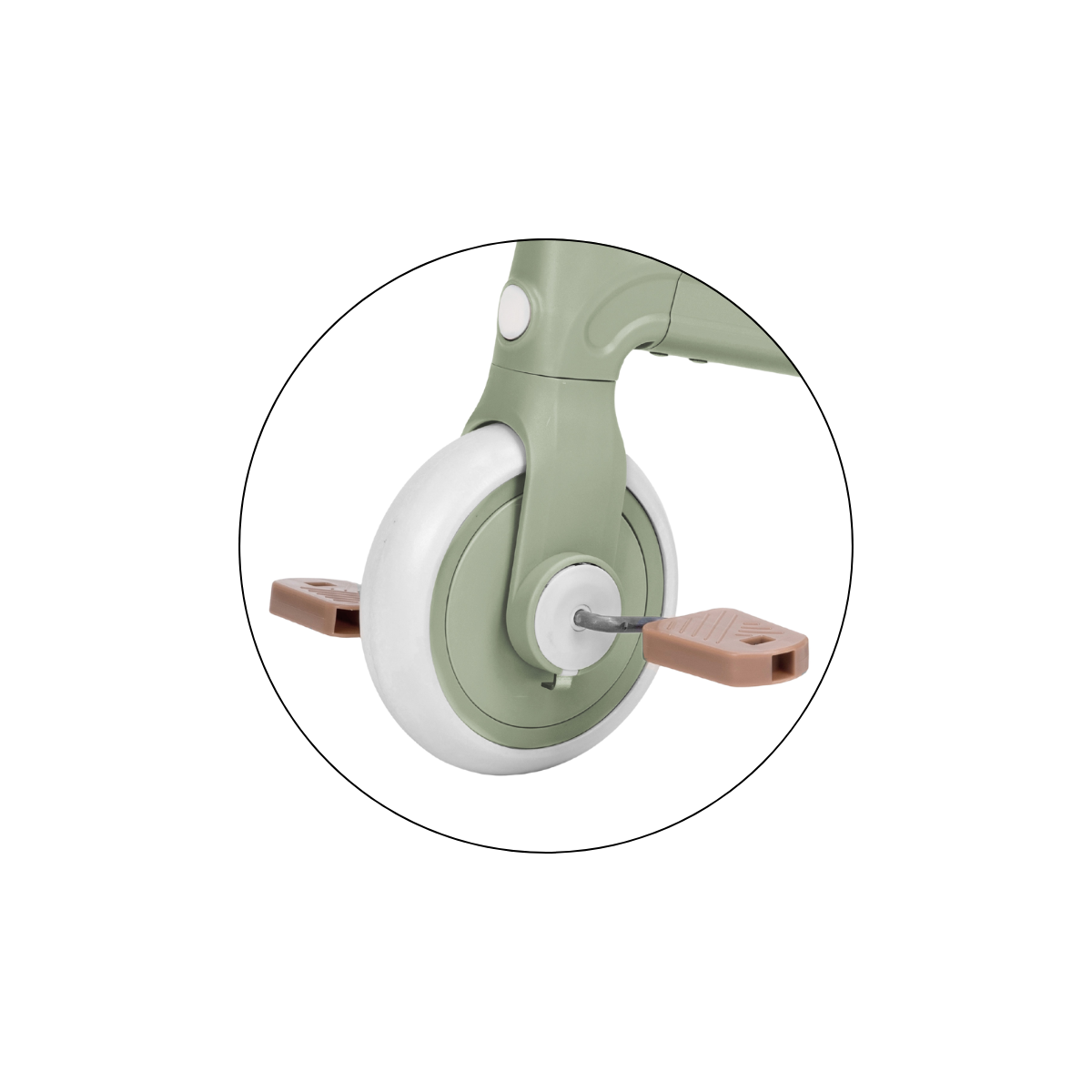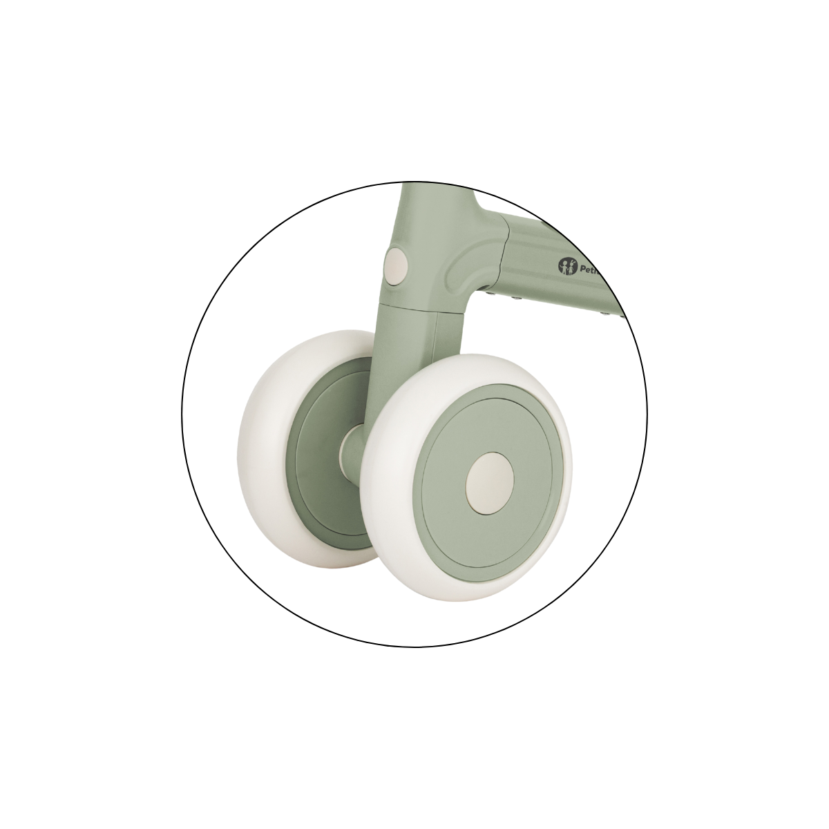 Au début, Bingo s’utilise comme un tricycle sécurisé, avec la possibilité d’installer deux roues à l’avant ou à l’arrière. Cette configuration offre une stabilité optimale pour les enfants qui découvrent leurs premiers mouvements et apprennent à se déplacer en toute confiance.